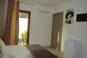 Camera climatizzata dotata di WiFi gratuito, TV a schermo piatto, letto in ferro battuto e bagno interno con doccia.