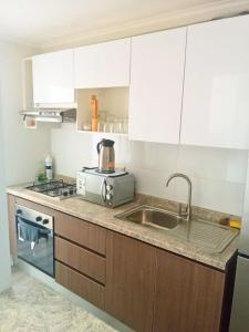Departamento La serena is composed of 2 bedrooms, a fully equipped kitchen, and 1 bathroom. A flat-screen TV is featured.
