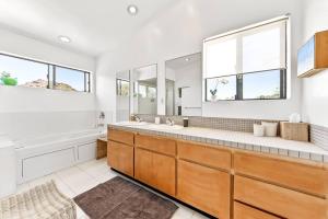 W domu wakacyjnym zapewniono patio, kilka sypialni (2), salon z telewizorem z płaskim ekranem, kuchnię ze standardowym wyposażeniem, takim jak lodówka i zmywarka, a także kilka łazienek (2) z prysznicem. Z okien obiektu Desert Dusk roztacza się widok na miasto. W domu wakacyjnym dla Gości przygotowano ręczniki i pościel.