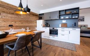 Questo appartamento con terrazza e vista sulla montagna offre 1 camera da letto, un soggiorno, una TV a schermo piatto, un angolo cottura con frigorifero e lavastoviglie e 1 bagno con doccia. Design Apartment Sonnrain fornisce lenzuola e asciugamani ai propri ospiti.
