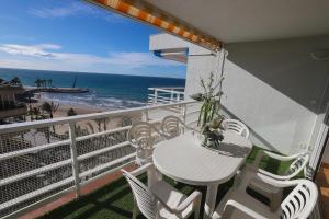 This bright apartment offers 1 double bedroom and 1 bedroom with 2 bunk beds. The kitchen is equipped with a dishwasher, ceramic hobs, and kitchenware; while the bathroom comes with a bath and towels. There is a washing machine and bed linen is also provided. This apartment has sea views.