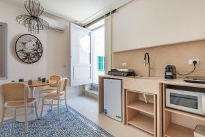 Este apartamento climatizado en Dimora del Levante Monopoli - Happy Rentals consta de 1 dormitorio, sala de estar, baño con ducha y secador, y zona de cocina completa con nevera y cafetera. El apartamento Dimora del Levante Monopoli - Happy Rentals dispone de toallas y ropa de cama.