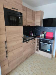 Apartmán v přízemí directe plage à moins de 100m má 1 ložnici, dobře vybavenou kuchyň s troubou a lednicí, obývací prostor a TV s plochou obrazovkou.