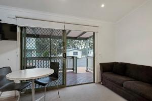 This open plan studio has a queen bed, lounge and dining area, full kitchen and ensuite bathroom. This room has no capacity for babycots.