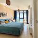 El apartamento con aire acondicionado de Dolce Vita Blue Boho, Premium Apartment with seaview dispone de 2 dormitorios, sala de estar, cocina con nevera y cafetera, y 2 baños con ducha y artículos de aseo gratis. El apartamento Dolce Vita Blue Boho, Premium Apartment with seaview dispone de toallas y ropa de cama.