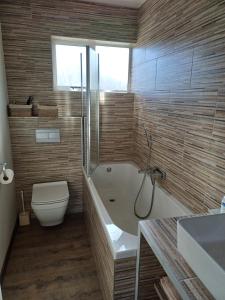 Featuring a private entrance, this spacious apartment also comprises 2 bedrooms, a seating area and 1 bathroom with a bath and a shower. Guests will find a stovetop, a refrigerator, a dishwasher and kitchenware in the well-equipped kitchen. The apartment also provides guests with a barbecue. Boasting a balcony with garden views, this apartment also provides a washing machine and a flat-screen TV with streaming services. V této ubytovací jednotce je k dispozici 3 postele.