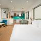 Jede Wohneinheit im Dolphin Hotel and Apartment verfügt über eine voll ausgestattete Küche mit Esstisch, einen Flachbild-Sat-TV sowie ein eigenes Bad mit Bidet, Föhn und kostenfreien Pflegeprodukten. Ein voll ausgestattetes eigenes Badezimmer mit einer Dusche und Hausschuhen ist vorhanden.