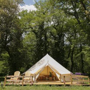 Tento luxusní stan s výhledem na hory má kuchyň s dobrým vybavením včetně lednice, mikrovlnné trouby a varné desky a koupelnu.