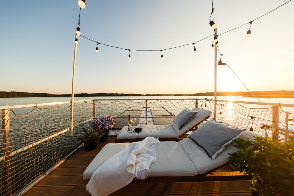 Ubicato fronte spiaggia a Mikołajki, a soltanto 24 km da Tropikana Aqua Park, l’alloggio Domek na wodzie - Houseboat -sauna, taras na dachu, dwie sypialnie propone giardino, zona spiaggia privata, sala comune e WiFi gratuito. L'appartamento dispone di parcheggio privato gratuito e si trova in una zona dove potrete praticare l’escursionismo e il ciclismo.