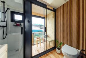 Questo appartamento offre una sauna. Presso Domek na wodzie - Houseboat -sauna, taras na dachu, dwie sypialnie troverete a disposizione una terrazza e un’area giochi per bambini.