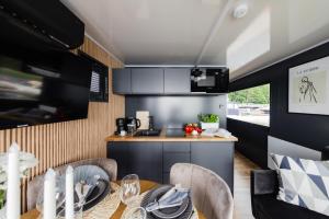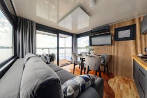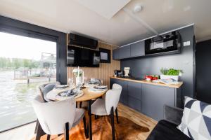 Questo appartamento con aria condizionata ha 2 camere da letto, TV a schermo piatto con canali satellitari, zona pranzo e angolo cottura con frigorifero e soggiorno. Domek na wodzie - Houseboat -sauna, taras na dachu, dwie sypialnie fornisce lenzuola e asciugamani ai propri ospiti.