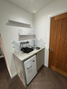 Apartmán v 1 double bed studio with private access and parking má 1 ložnici, 1 koupelnu se sprchou a kuchyňský kout s mikrovlnnou troubou a lednicí. V apartmánu 1 double bed studio with private access and parking je také TV s plochou obrazovkou a koupelna s toaletními potřebami zdarma.