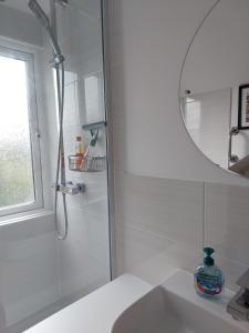 Ein Flachbild-TV gehört zur Ausstattung des Double room with ensuite shower room in quiet, private house. In diesem Bed & Breakfast werden Handtücher und Bettwäsche zur Verfügung gestellt.