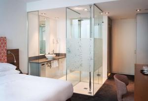 The air-conditioned rooms and suites of the DoubleTree by Hilton Frankfurt Niederrad hotel feature a designer bathroom and flat-screen TV.