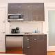 This studio has a microwave, toaster, mini fridge and coffee maker