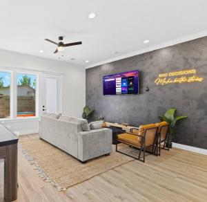 Dom wakacyjny w obiekcie oferuje 4 sypialnie, salon, w pełni wyposażoną kuchnię z lodówką i ekspresem do kawy oraz 3 łazienki z prysznicem i bezpłatnym zestawem kosmetyków. W domu wakacyjnym Downtown Luxe Retreat - King Bed, Pool, Pong, Billiards, Grill & FREE Coffee dla Gości przygotowano ręczniki i pościel.