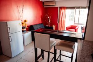 Dpto 1 hab con cochera cuenta con aire acondicionado, 1 dormitorio, sala de estar, zona de comedor, TV de pantalla plana por cable y cocina con nevera. El apartamento el alojamiento dispone de toallas y ropa de cama.