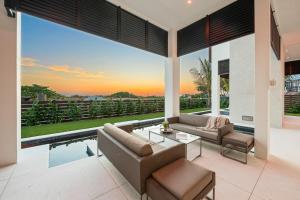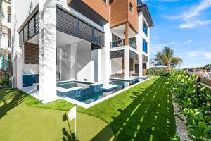 The private pool is the special feature of this holiday home. Featuring a private entrance, this spacious holiday home also comprises 6 bedrooms, a seating area and 5 bathrooms with a bath and a hairdryer. Guests will find a stovetop, a refrigerator, a dishwasher and kitchenware in the kitchen. The holiday home also provides guests with a barbecue. The air-conditioned holiday home provides a TV, a washing machine, a tea and coffee maker, tumble dryer as well as sea views. The unit offers 6 beds.