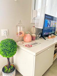 Boasting a private entrance, this air-conditioned holiday home includes 1 living room, 2 separate bedrooms and 1 bathroom with a walk-in shower and a bidet. In the fully equipped kitchen, guests will find a stovetop, a refrigerator, kitchenware and a tea and coffee maker. This holiday home has soundproof walls, flat-screen TV with satellite channels, garden views, as well as wine/champagne for guests. The unit has 4 beds.