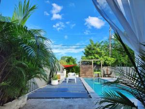 The private pool is the standout feature of this holiday home. The holiday home offers tumble dryer, heating, as well as a shared bathroom boasting a hairdryer. In the kitchen, guests will find a stovetop, a refrigerator, an oven and a microwave. The spacious holiday home features air conditioning, a washing machine, a private entrance, a tea and coffee maker and a flat-screen TV. The unit has 3 beds.