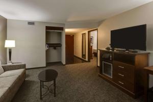This suite has a sofa bed, microwave, refrigerator, and flat-screen TV.