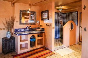 Berber-style tent with a view of the dunes. It features groundsheet, a real bed and space storage.