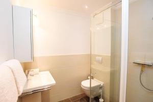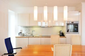 Apartmán má 1 ložnici, 1 koupelnu, ložní prádlo, ručníky, TV s kabelovými programy, kuchyň s kompletním vybavením a balkon s výhledem na město. V koupelně ubytování Dünenblick nechybí sprcha ani fén.