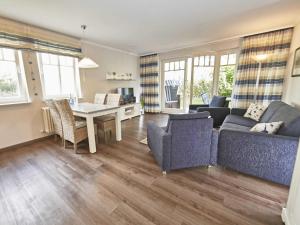 Apartmán v Dünenpark Binz - WG202 mit Terrasse strandnah zahrnuje 1 ložnici, obývací pokoj, 1 koupelnu a plně vybavený kuchyňský kout s lednicí a myčkou. V koupelně ubytování Dünenpark Binz - WG202 mit Terrasse strandnah nechybí sprcha ani fén.
