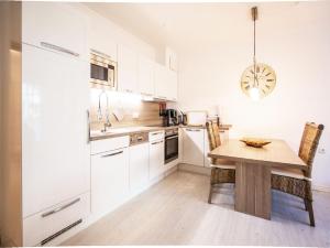 Tento apartmán má 1 ložnici, obývací prostor s TV s plochou obrazovkou, kuchyň s kompletním vybavením včetně lednice a myčky nádobí a koupelnu s fénem. Apartmán Dünenpark Binz - Komfortplus Ferienwohnung mit 1 Schlafzimmer und Terrasse im Erdgeschoss 200 poskytuje hostům ručníky a ložní prádlo.
