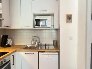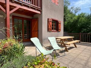 This apartment has 2 bedrooms, a kitchenette with a dishwasher and a microwave, a flat-screen TV, a seating area and 1 bathroom fitted with an a bath or shower. Guests at Duplex & terrasse panoramique. Parking. Piscine été can enjoy a meal in the outdoor dining area with mountain views.