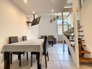 Klimatizovaný apartmán Duplex 6 à 7 personnes, 100 m des plages du midi, Cannes zahrnuje 2 ložnice, satelitní TV s plochou obrazovkou, jídelní kout, kuchyň s lednicí a obývací prostor.