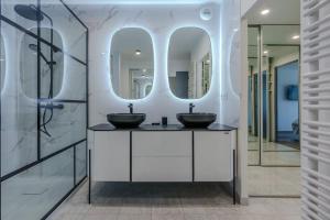 W apartamencie z 5 sypialniami zapewniono salon z telewizorem z płaskim ekranem, kuchnię z pełnym wyposażeniem, w tym lodówką i zmywarką, a także kilka łazienek (4) z suszarką do włosów.
