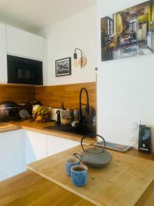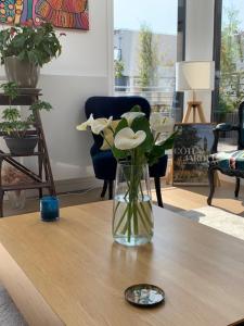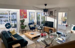 In the kitchen, guests will find a stovetop, a refrigerator, a dishwasher and kitchenware. The spacious apartment provides a washing machine, a coffee machine, a wardrobe as well as a terrace with garden views. The unit offers 5 beds.