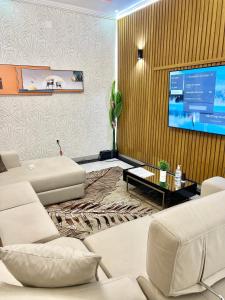 This air-conditioned villa features 2 living rooms, 4 separate bedrooms and 4 bathrooms with a shower. The well-fitted kitchen has a stovetop, a refrigerator, kitchenware and an oven. Boasting a balcony with garden views, this villa also features a washing machine and a flat-screen TV with streaming services. The unit has 4 beds.