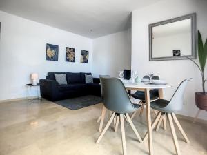 Questo appartamento con aria condizionata comprende 1 camera da letto, un soggiorno, un angolo cottura con utensili, frigorifero e macchina da caffè, e 1 bagno con bidet e asciugacapelli. Asciugamani e lenzuola sono inclusi nei servizi di Duquesa Superb Seafront Apartment Marina Real.