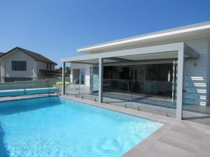 This holiday home's standout features are the private pool and fireplace. Guests will find a stovetop, a refrigerator, a dishwasher and an oven in the kitchen. The holiday home also provides guests with a barbecue. The spacious air-conditioned holiday home provides a flat-screen TV, a washing machine, a dining area, a wardrobe as well as sea views. The unit offers 3 beds.