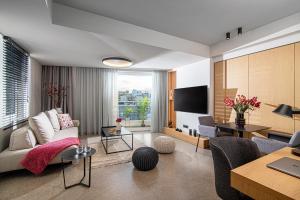 Meals can be prepared in the well-fitted kitchen, which comes with a stovetop, a refrigerator, a dishwasher and an oven. The apartment provides air conditioning, a washing machine, a tea and coffee maker, tumble dryer, as well as a flat-screen TV with cable channels. The unit offers 1 bed.