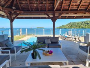 This villa's standout feature is the pool with a view. Boasting a private entrance, this air-conditioned villa includes 1 living room, 2 separate bedrooms and 2 bathrooms with a walk-in shower. Guests will find a stovetop, a refrigerator, a dishwasher and kitchenware in the kitchen. The villa also features a barbecue. Featuring a terrace with sea views, this villa also offers a washing machine and a flat-screen TV with cable channels. The unit is furnished with 2 beds.
