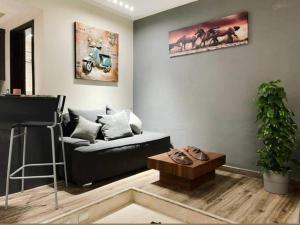 The fully equipped kitchen features a stovetop, a refrigerator, an oven and a microwave. The spacious air-conditioned apartment offers a flat-screen TV with satellite channels, a washing machine, a seating area, a wardrobe as well as garden views. The unit offers 1 bed.