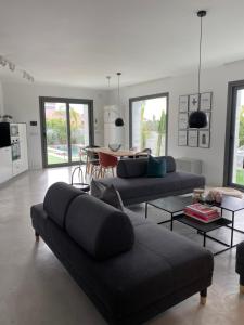 The private pool and hot tub are the special features of this holiday home. This spacious holiday home comes with 1 living room, 2 separate bedrooms and 2 bathrooms with a shower and a hairdryer. Guests will find a refrigerator, a dishwasher, kitchenware and an oven in the kitchen. The holiday home also includes a barbecue. The air-conditioned holiday home features a flat-screen TV with streaming services, a washing machine, a tea and coffee maker, a seating area as well as garden views. V této ubytovací jednotce se nachází 5 postelí.