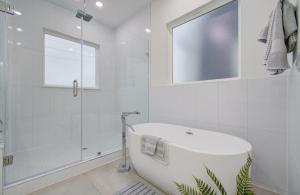 Tento prázdninový dům má 3 ložnice, 4 koupelny, ložní prádlo, ručníky, TV s plochou obrazovkou, jídelní část a kuchyň s kompletním vybavením. Z balkonu ubytování ubytování se nabízí výhled na město. V koupelně ubytování Eco-Chic Modern, KING bed, 3BR, 10 Min to NRG, Dntwn & Med Center, Inquire for dscnt naleznete sprchu, vanu a toaletní potřeby zdarma.