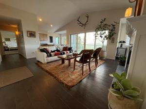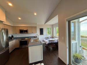 The fireplace is the standout feature of this holiday home. This spacious holiday home features 1 living room, 3 separate bedrooms and 2 bathrooms with a bath and free toiletries. In the fully equipped kitchen, guests will find a stovetop, a refrigerator, kitchenware and an oven. The holiday home features a flat-screen TV with streaming services, a washing machine, a private entrance, a tea and coffee maker as well as sea views. The unit has 3 beds.