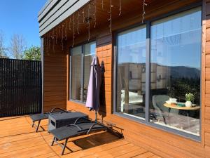 Featuring a private entrance, this air-conditioned chalet comprises 1 living room, 1 separate bedroom and 1 bathroom with a walk-in shower and a hairdryer. Guests will find a stovetop, a refrigerator, kitchenware and a microwave in the kitchen. The chalet also provides guests with a barbecue. The chalet features soundproof walls, a seating area, a dining area as well as a terrace with garden views. The unit offers 1 bed.