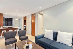 Questo appartamento offre 2 camere da letto, una TV a schermo piatto con canali satellitari, una cucina con frigorifero e forno, una lavatrice e 2 bagni con doccia. Asciugamani e lenzuola sono inclusi nei servizi di Eden on the Bay 129 by Host Agents.