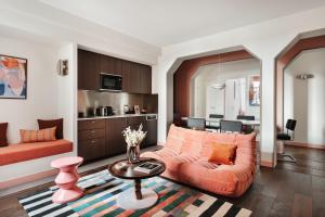 Featuring a private entrance, this spacious apartment also consists of 1 living room, 3 separate bedrooms and 2 bathrooms with a shower. The fully equipped kitchen features a stovetop, a refrigerator, a dishwasher and kitchenware. The apartment provides a washing machine, a tea and coffee maker, a seating area, a flat-screen TV with streaming services, as well as an inner courtyard view. The unit offers 3 beds.