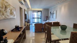 Questo appartamento con aria condizionata dispone di 3 camere da letto, cucina e 4 bagni. Presso Edifício Atobá, Apartamento de 3 Suítes com Vista ao Mar, Churrasqueira na Varanda e Ar Condicionado, à 150m da Praia com Serviço Incluso è disponibile una TV a schermo piatto.