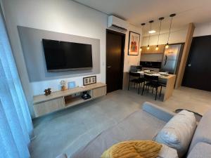 L'appartamento di Edificio Liv P.Verde Apto 1013-Mandi Hospitalidade dispone di balcone, 1 camera da letto, soggiorno e cucina con frigo e forno. Edificio Liv P.Verde Apto 1013-Mandi Hospitalidade fornisce lenzuola e asciugamani ai propri ospiti.