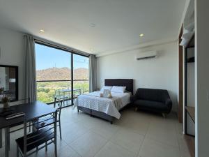 The studio's kitchen, which features a refrigerator and kitchenware, is available for cooking and storing food. The studio provides air conditioning, a washing machine, a terrace with garden views as well as a private bathroom featuring a bath or a shower. The unit offers 2 beds.