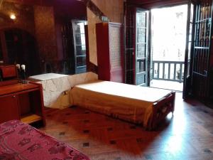 This apartment has a sofa, one double bed and one single bed, a balcony and kitchen.