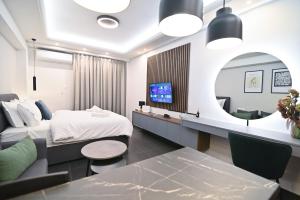 In the kitchen, guests will find a stovetop, a refrigerator, kitchenware and an oven. The air-conditioned apartment features a flat-screen TV, a washing machine, a tea and coffee maker, a wardrobe as well as city views. V této ubytovací jednotce se nachází 2 postele.